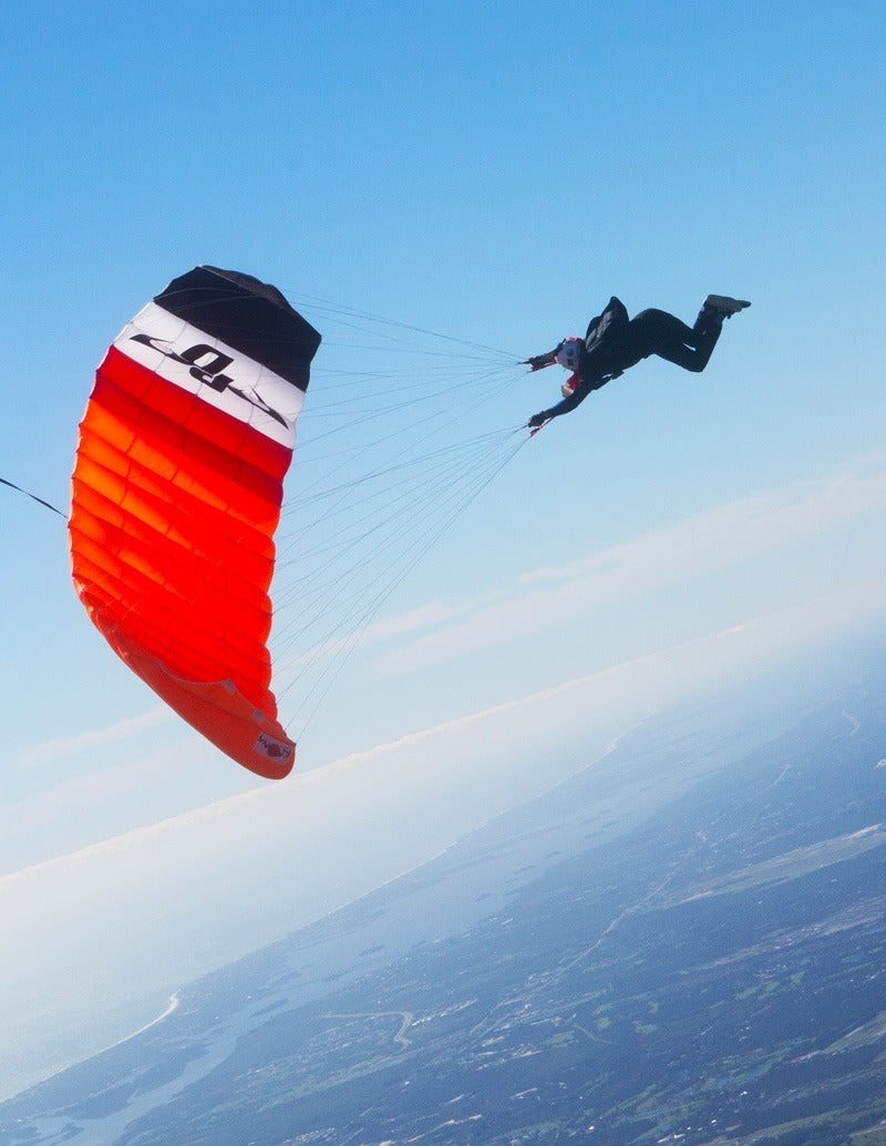 Got your attention because it’s named after a cool samurai sword, didn’t we? More than just a flashy name, the Katana boasts ideal specs for any experienced canopy pilot who’s not quite ready for a cross-brace, but itching for a more aggressive flight. A step-up from our Sabre2 and Stiletto (yeah…we like swords), it’s a fully elliptical 9-cell designed for soft, smooth openings, a long control range, a steep dive (‘cause we know you wanna go fast), light front riser pressure, and a powerful flare.