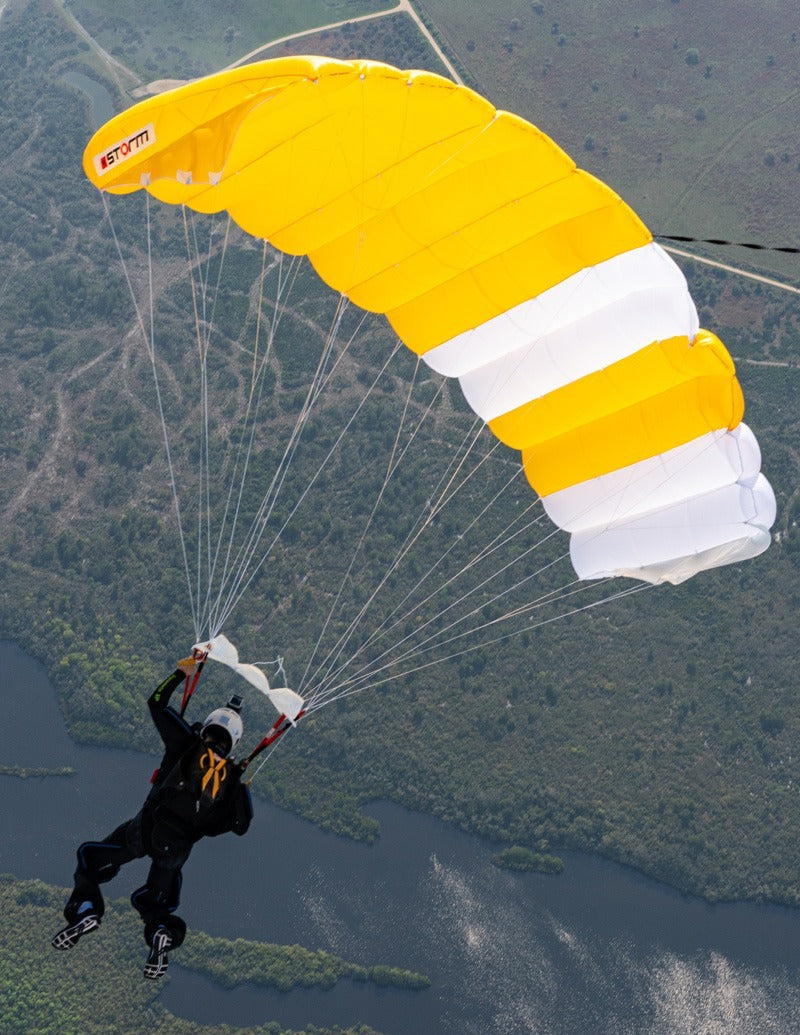 Whoever said “you can’t have your cake and eat it, too” never flew a Storm. Torn between flying a 7-cell vs a 9-cell? Looking for the perfect wingsuit canopy? Flying occasional CF, but not ready for a second canopy? Our mad scientist engineers endeavored to solve your problems–condensing all your favorite 9-cell characteristics (steep glide, long recovery arc, and a powerful bottom-end flare) into 7 cells while retaining the the long snivels and soft openings you’ve grown to love. The Storm checks all the boxes. So have your cake. Eat it, too. Just don’t get it on your lines.